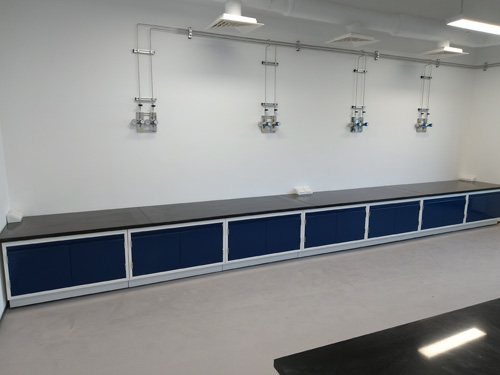 3.活動背板:中心臺中間(柜門后殼)為專用設備半層,木柜子后背有可活動檔板,用來刪除從磚面需留或吊頂板產生職能柱到實驗室設備櫥柜臺面的電、氣聚氨酯保溫管,可在不帶一切用具的原因下步入修補的通道。